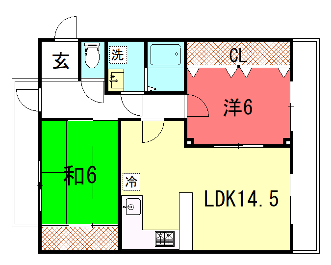 - 洋室6帖、和室6帖、LDK14.5帖