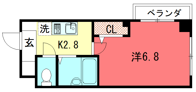 - K2帖、洋室6.7帖