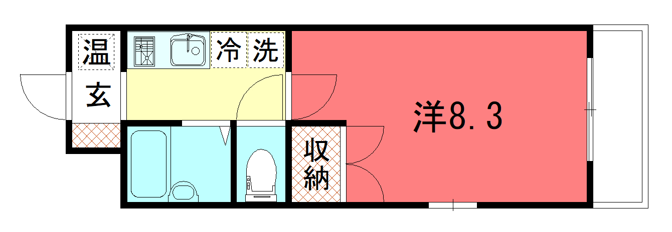 - K2帖、洋室8.3帖