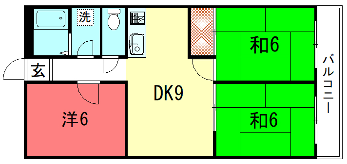 - 和室6帖、和室6帖、洋室5帖、LDK9帖