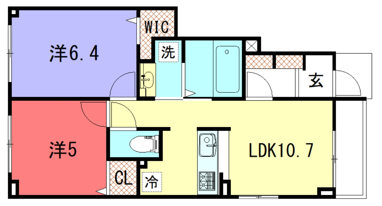 - LDK10.7帖、洋室6.4帖、洋室5帖
