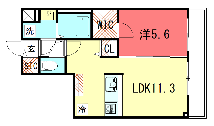 - 洋室5.6帖、LDK11.3帖