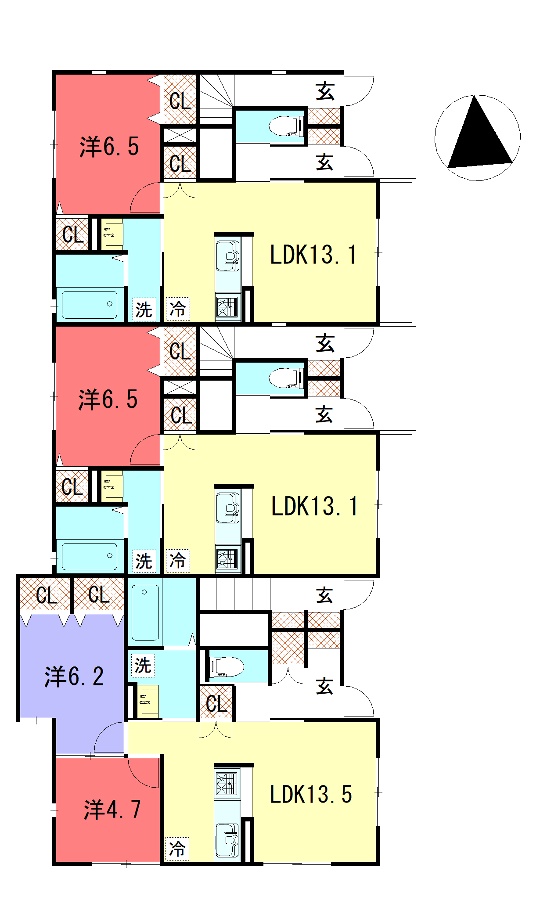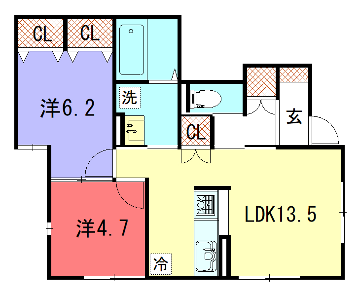 - LDK13.5帖、洋室6.2帖、洋室4.7帖