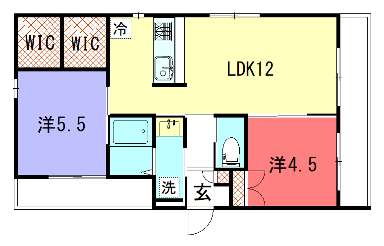 - LDK12帖、洋室5.5帖、洋室4.5帖