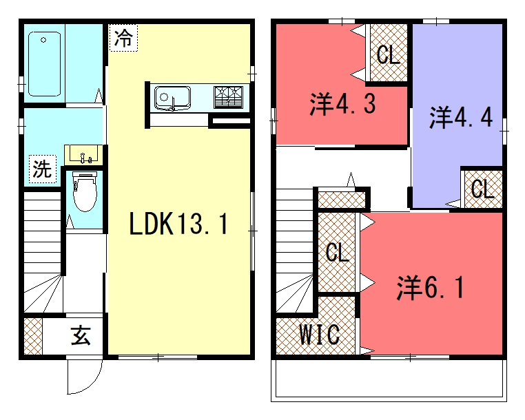 - LDK13.1帖、洋室6.1帖、洋室4.4帖、洋室4.3帖