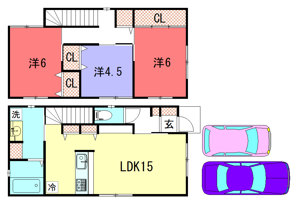 - LDK15帖、洋室6帖、洋室6帖、洋室4.5帖