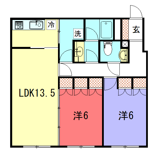 - LDK13.5帖、洋室6帖、洋室6帖