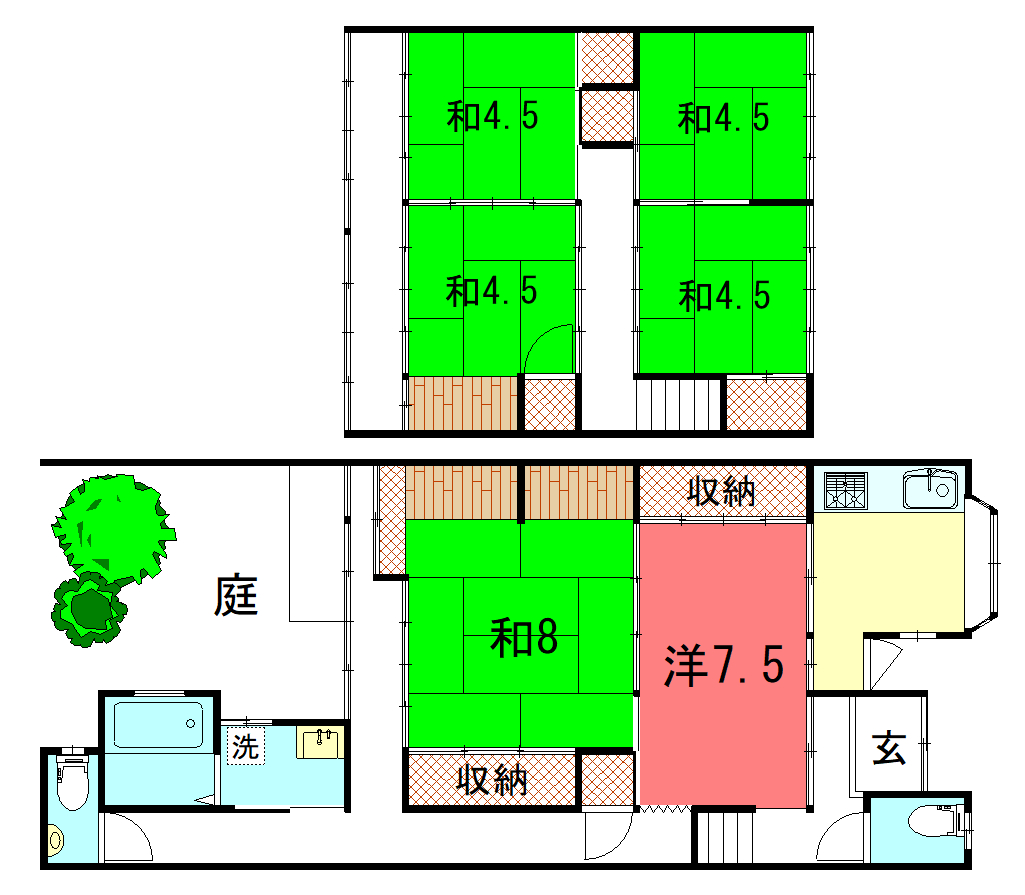 - 洋室7.5帖、和室8帖、和室4.5帖、和室4.5帖、和室4.5帖、和室4.5帖