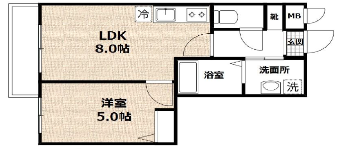 - LDK8帖、洋室5帖